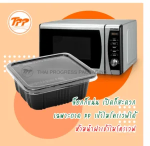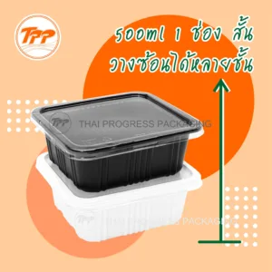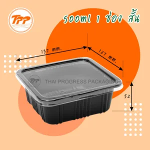 ชุดกล่องข้าว PP 500ml 1 ช่อง (สั้น) พร้อมฝา สีดำ PET (375 ชุด)