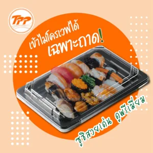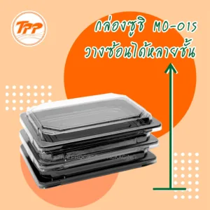 ชุดกล่องซูชิ PP รุ่น MO-01S สีดำ พร้อมฝา PET (450 ชุด)