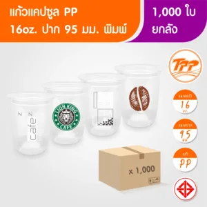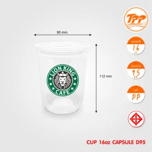 แก้วพลาสติกใส ขนาด 16 oz แบบแคปซูล ปากแก้ว 95 mm