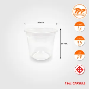 แก้วพลาสติกใส ขนาด 12 oz แบบแคปซูล ปากกว้าง 95 mm