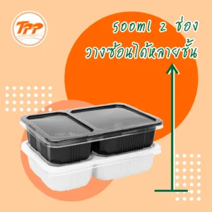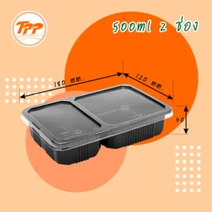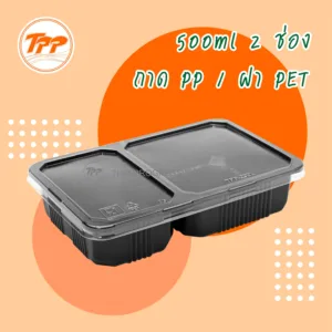 ชุดกล่องข้าว PP 500ml 2 ช่อง พร้อมฝา สีดำ PET (250 ชุด)