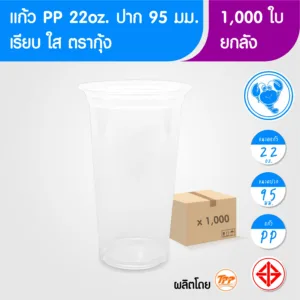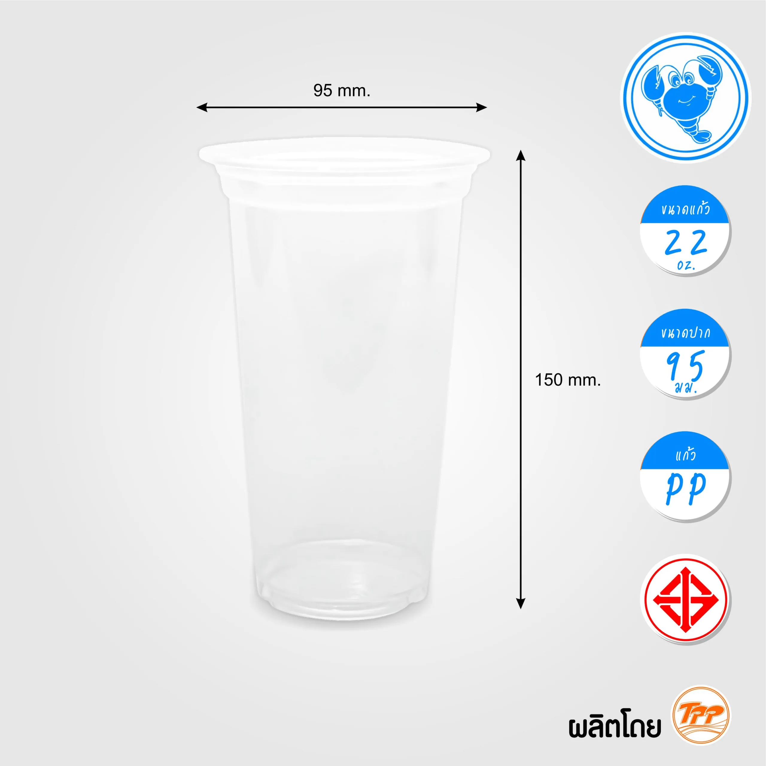 ตรากุ้ง (ยกลัง) แก้วพลาสติก 22oz เรียบ ใส 1,000 ใบ PP ปาก 95